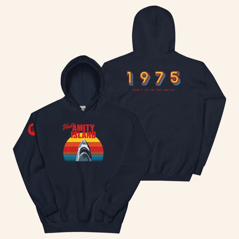 AMC Theatres Merch Jaws 50th Anniversary Visit Amity Island Hoodie Gifts For Movie Fans - Thriftgiftshop