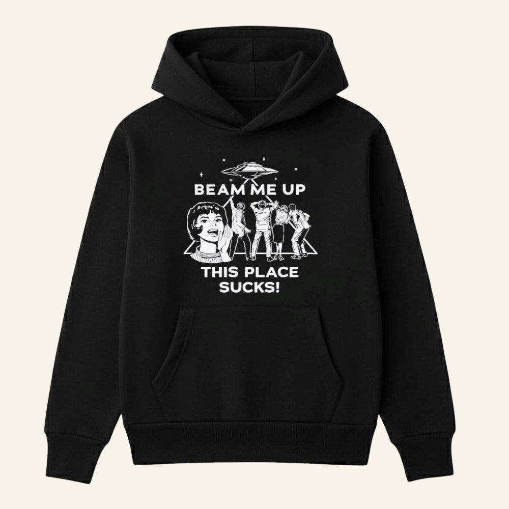 Beam Me Up This Place Sucks Hoodie Stranger Things Merch Christmas Gift Ideas For Sister - Thriftgiftshop