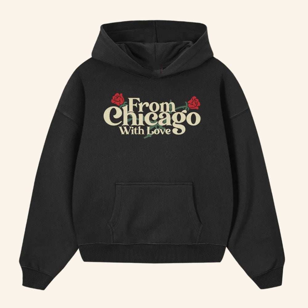 Chicago Over Everything Merch Modern Roses Black Hoodie Present For Sister - Thriftgiftshop