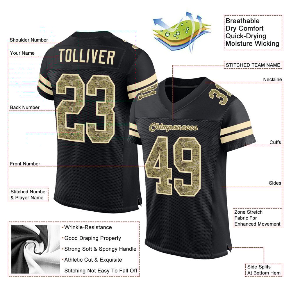 Custom Black Camo Cream Mesh Football Jersey for Men and Women