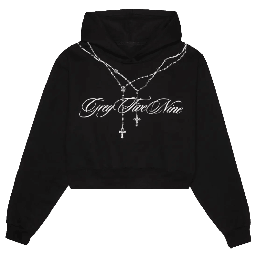 G59 Merch G59 Womens Rosary Cropped Hoodie Black Grey Five Nine Hoodie Birthday Gift For Her.
