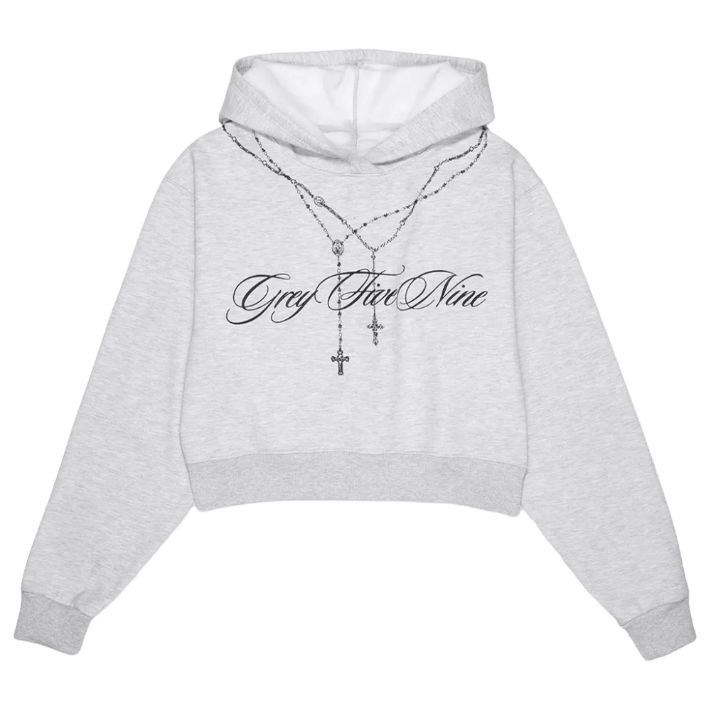 G59 Merch G59 Women's Rosary Cropped Hoodie Grey Five Nine Hoodie Birthday Gift For Sister - Thriftgiftshop
