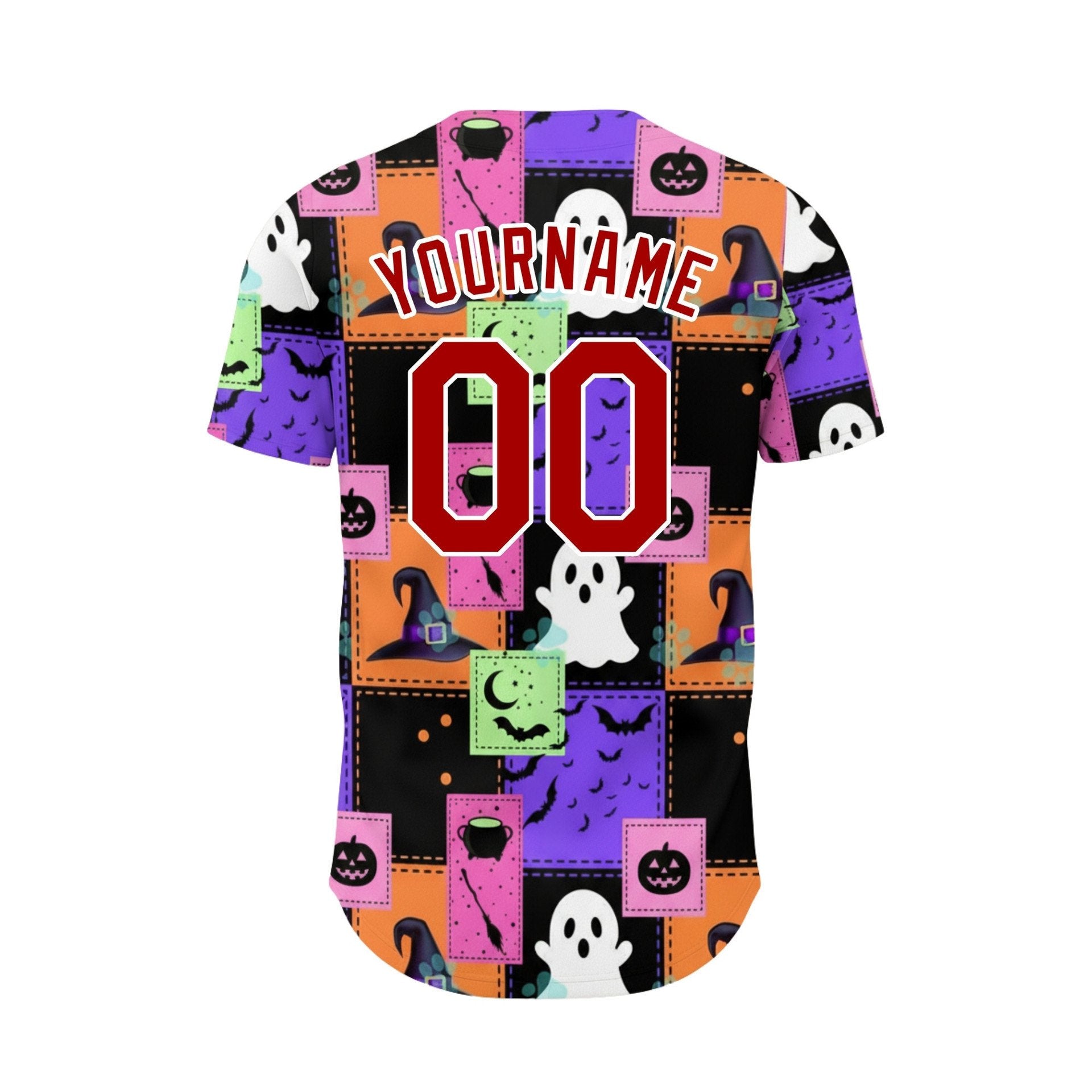 Halloween Red Black Patchwork Ghost Custom Baseball Jersey