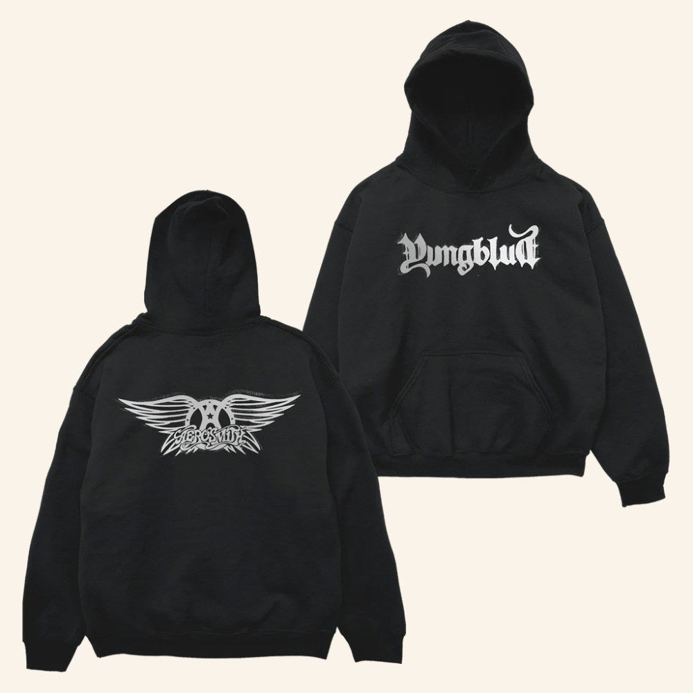 Yungblud Merch Aerosmith And YUNGBLUD Hoodie One More Time Black Hoodie Fan Apparel - Thriftgiftshop